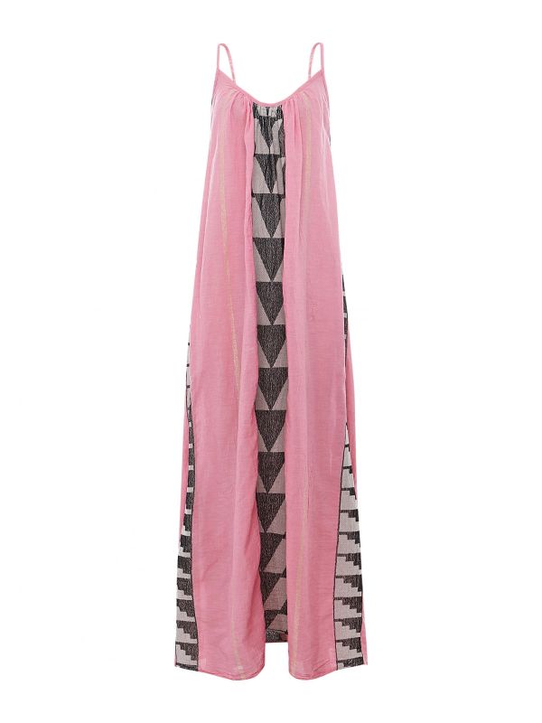 The Pearl & Caviar Zakar dress is a SS22 must-have for all of your upcoming vacations. Beautifully crafted in Greece from pure cotton, the dress boasts a relaxed fit with a maxi length. With delicate spaghetti straps and striking print all over, you will be sure to make an impression wherever you go in this dress.