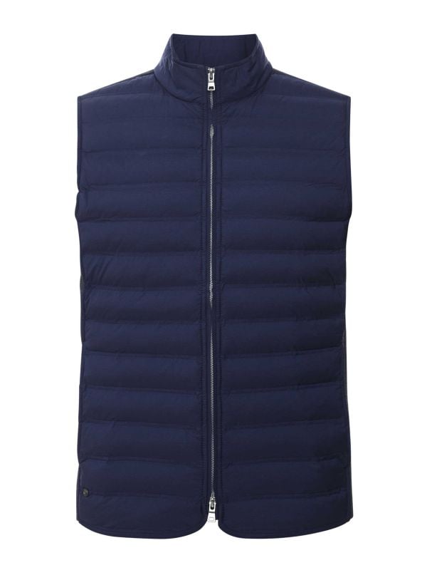 The Peter Millar Winsome hybrid gilet is designed for lightweight warmth with a sleek, modern feel. It features a stretch channel quilted insulation front paired with a three-layer mélange stretch spacer fabric at the back and sides, giving you both comfort and flexibility. A stand collar and two-way zip closure add practical detail, while discreet on-seam side pockets keep the look clean. Cut to a tailored fit, the Peter Millar gilet is a versatile layer for smart-casual styling.