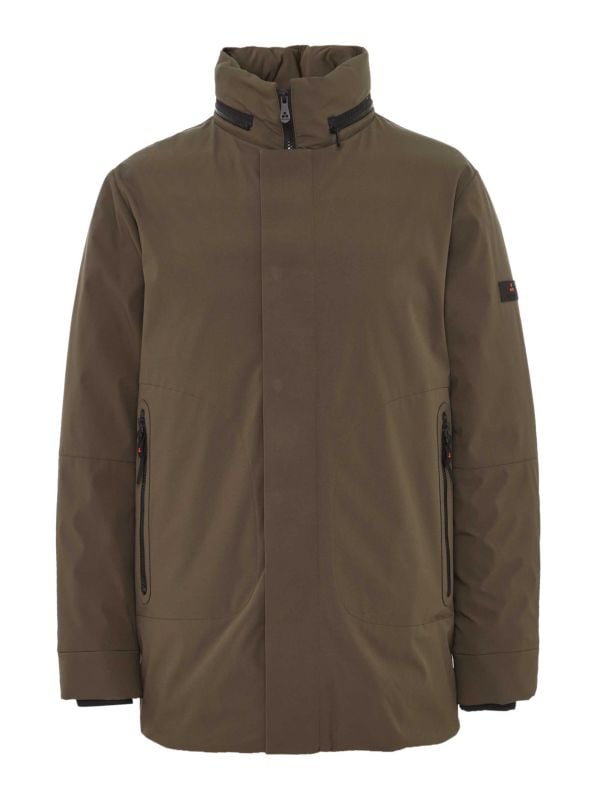 The high neck with a zip-concealed hood and concealed two-way front zip adds practical style, and zip side pockets plus windproof cuffs keep the elements at bay. Cut in a regular fit, the Peuterey jacket is perfect for everyday layering.