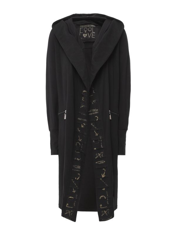 The Philomena Christ jersey coat is a versatile piece to throw on with your favourite casual outfits. Crafted in soft stretch cotton, this comfortable longline jacket features a fixed hood, long sleeves with thumbholes at the cuffs and a distinctive pleated trim complete with contrast logo print.