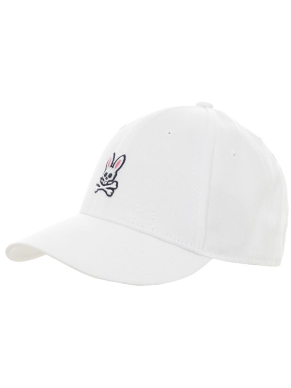 The Psycho Bunny Core Tall Bunny Cap is a six-panel baseball cap with a curved brim and the label's embroidered rabbit-and-crossbones motif. Constructed from 100% cotton, it features stitched eyelets for ventilation, a top button and tonal stitching for a clean finish. The rear adjustable strap secures with a metal buckle debossed with the logo for an adjustable fit. This cap has a pared-back profile that pairs well with sportswear or relaxed tailoring, and its adjustable design fits most.
