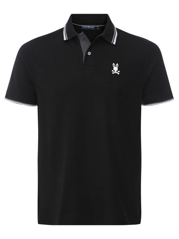 The flat knit collar and cuffs add a sharp, clean look, while the two-button placket is enhanced by contrasting inner placket detailing and an under collar, giving it a bold touch. Tipped trims add a dash of flair, making it stand out in any casual setting. Finished off with the iconic embroidered Bunny logo on the chest, this Psycho Bunny polo is where luxury meets laid-back cool.