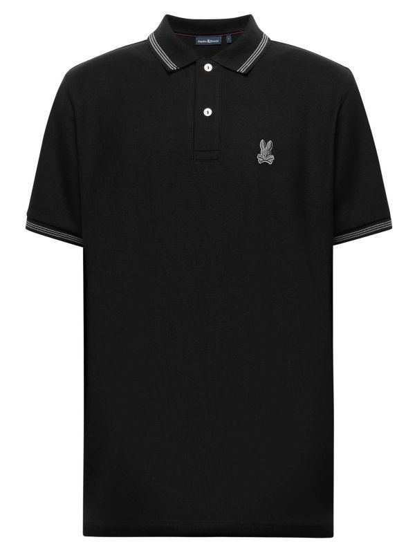 Featuring a tipped collar, placket, and cuffs, along with a two-button placket and ribbed cuffs, it combines subtle detailing with effortless style. Finished with mother-of-pearl buttons and the signature embroidered Bunny logo, this short-sleeve Psycho Bunny polo in a regular fit is perfect for a polished yet relaxed look.