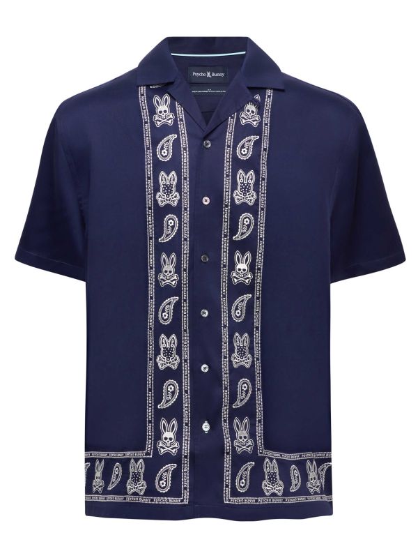 - Embroidered paisley border with Psycho Bunny rabbit-and-crossbones motif