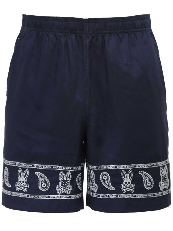 The Psycho Bunny Luke Tencel Shorts combine casual ease with decorative detailing. They feature an elasticated waistband, side slip pockets and a back welt pocket for everyday practicality. A bandana-inspired embroidered hem runs around the leg openings with repeating paisley and bunny motifs for a distinctive finish. Cut to an above-knee length, the shorts pair effortlessly with shirts or tees for relaxed dressing. Crafted from tencel, they offer a smooth drape and comfortable feel for warm-weather wear.
