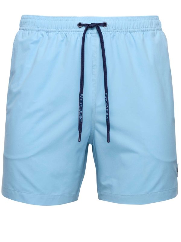 The Samos Hydro Swim Shorts from Psycho Bunny are a practical swim short finished with a water-repellent coating and an all-over logo repeat. They include an elasticated waistband with an adjustable branded drawcord for a secure fit and side pockets for essentials. The lightweight build offers easy movement for pool and beach days, while branding on the drawcord and a small hem patch provides distinctive detail.