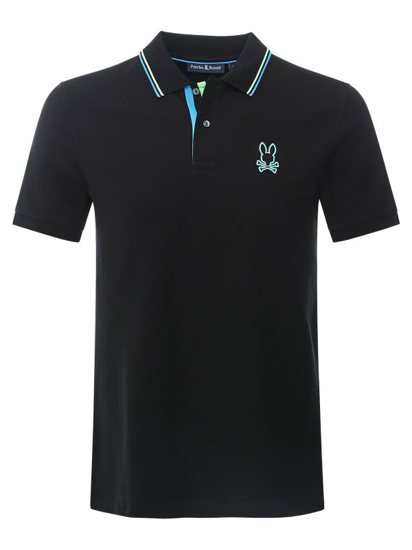 The two-button placket, adorned with exquisite mother-of-pearl buttons, adds a touch of refinement. Embroidered with the iconic Psycho Bunny logo, the polo shirt's tipped collar and inner placket lend a subtle yet distinctive contrast. With a trim fit that strikes a perfect balance between classic and slim, the Psycho Bunny Saratoga polo shirt effortlessly merges style with versatility.