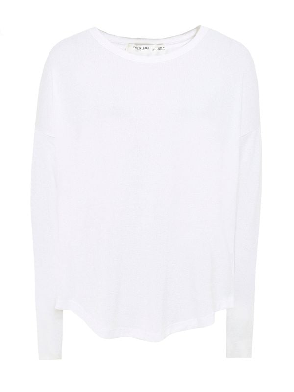 The Rag and Bone long sleeve Hudson top is an everyday essential with an ultra-soft feel to provide optimum comfort. Crafted from a rayon blend, this casual top has long sleeves, a round neckline and a rounded hem for a classic flattering look. Wear yours with your favourite jeans to create a timeless laid-back ensemble.