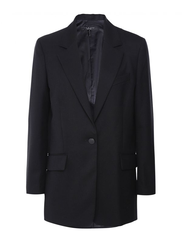 Borrowed from the boys, the Rag and Bone Ames blazer is a staple piece for all occasions. This versatile blazer is cut for an on-trend boyfriend fit with a straight, long silhouette. It's crafted from twill fabric and features a notched lapel, three pockets, Waterbury buttons, striped sleeve lining and grosgrain tape detailing for a chic design-led look.