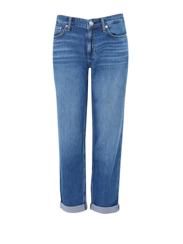 The Dre Boyfriend Jeans by Rag & Bone showcases the return of low-rise denim, with a waistline that sits below the natural waist. These Rag & Bone jeans are crafted from cotton denim and have a slightly baggy, straight cut leg and a button and zip fly. In a vintage blue shade, this style is perfect for your everyday wardrobe.