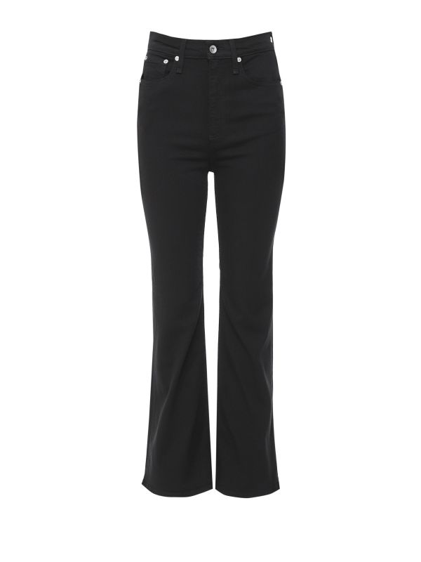 Introduce a retro silhouette to your looks this season with the Rag and Bone Casey jeans. Engineered in a cotton mix with comfort stretch, the jeans showcase a flattering slim fit with high waist and statement flared leg. Featuring a zip closure, belt loops and classic five pocket design, with the deep black hue allowing for versatile styling with separates.