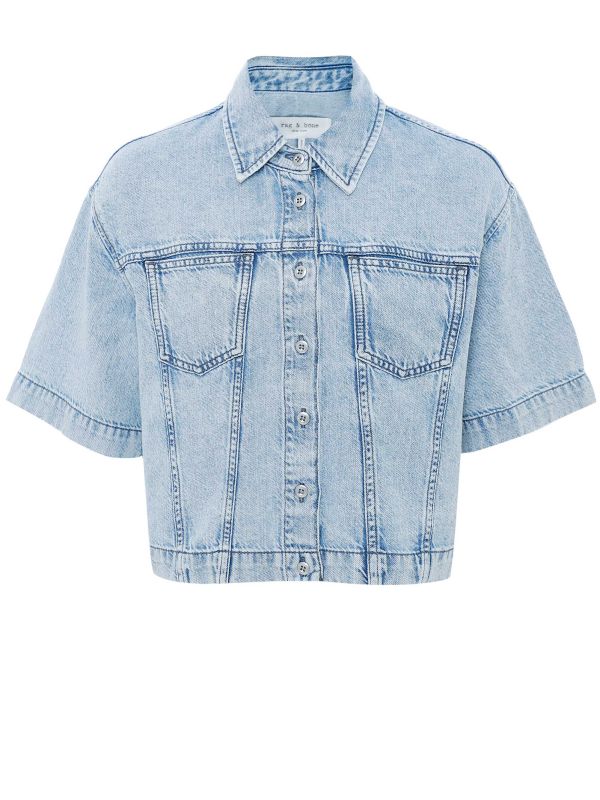 Rag & Bone's Ultra Featherweight Abby Top is the perfect denim shirt for summer. Cut from the Label's ultra lightweight drapey denim that's made for all-day comfort, this Rag & Bone top is an effortless choice to wear on repeat. Designed for a cropped fit, it features a collared neckline, button placket with branded buttons and patch pockets on the chest.