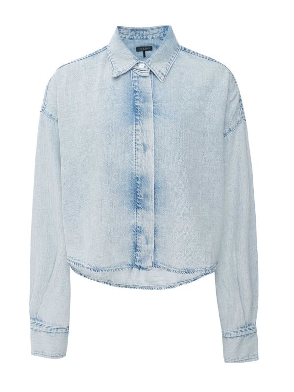 For a lightweight denim shirt this spring, discover the Beatrice from Rag & Bone. The Beatrice Shirt is a cropped shirt crafted from Rag & Bone's ultra featherweight denim which boasts supreme softness. It has a pointed collar, dropped shoulders, long sleeves with buttoned cuffs and a button up fastening. Made for a loose fit, this denim shirt is a comfortable and staple piece you can wear on repeat.