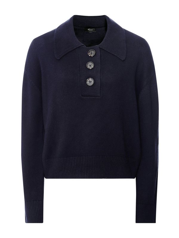 Invest in the Rails Shae sweater for a cosy layer this winter. Lovingly crafted in a cotton knit with cashmere, the jumper promises exceptional comfort and a super soft handle. Featuring a stylish oversized collar with three button placket and ribbed trims, with the versatile deep navy hue allows for easy styling with separates.