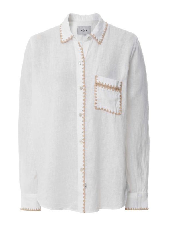 The Charli White Blanket Stitch Shirt by Rails is a summer staple. This classic white shirt is crafted from a luxe linen blend and features traditional shirting details like the pointed collar, button-down fastening, long sleeves and single-button cuffs. Complete with a single patch pocket to the chest and elevated by a contrasting blanket stitch trim, this shirt is made for the warm weather.