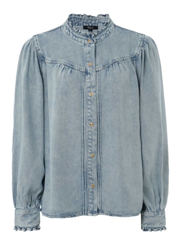 The Rails Alanna blouse is a stylish blend of comfort and sophistication, crafted from a luxurious lyocell and rayon blend. Its antiqued indigo denim fabric offers a timeless, well-worn look, while the frilled collar and short frill cuffs add a touch of feminine charm.