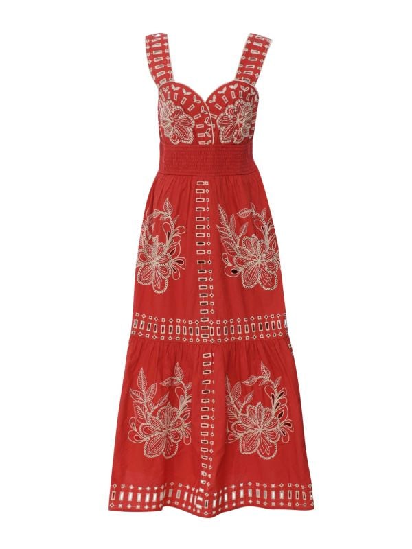 The shirred waist adds shape and movement, while delicate embroidery and eyelet details bring a beautiful, handcrafted vibe to the look. Finished in a breezy midi length, the Rails dress is an easy choice for anything from garden parties to weekend getaways—just add sandals and you're set.