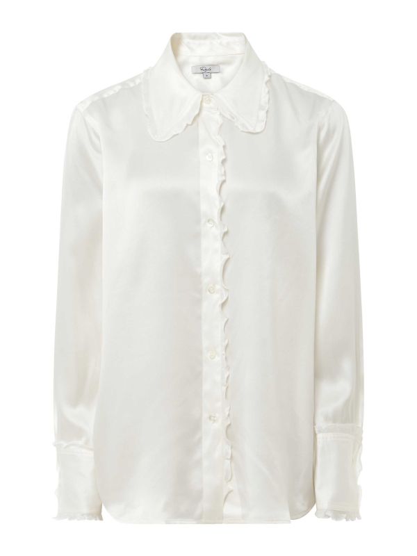 Meet the Fia Shirt by Rails, a silk charmeuse top made from 100% silk. Delicate and detailed, this Rails shirt is a classic style elevated by bias-cut lettuce edges to the collar, button placket and cuffs. It closes with a button fastening. The Fia brings something new to your shirt collection and will remain a wardrobe staple for years to come. Dress it up or down for any occasion.