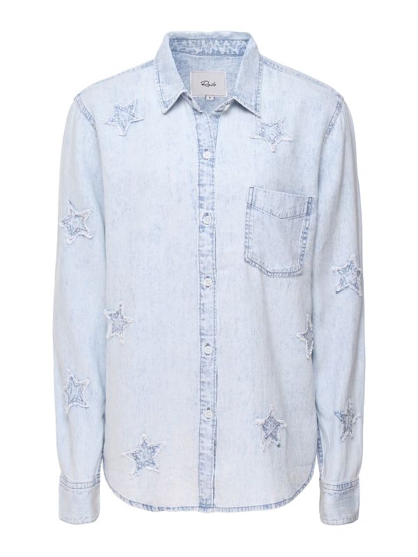 Get a cool, laid-back look this season with the Rails Ingrid star shirt. Crafted in a lightweight fabric, this stylish shirt features a button-down fastening, pointed collar, chest pocket and a classic fit. Applique stars with raw edges add a distinctive, vintage-inspired look.