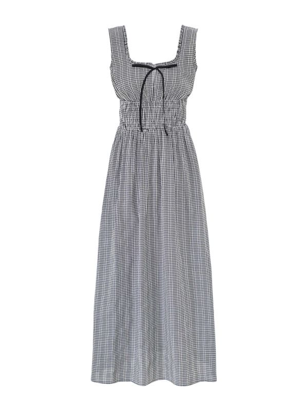 Discover the Jordie Gingham Maxi Dress by Rails. The maxi silhouette features a square scoop neckline with a tie at the Center front and a smocked high waist that defines the shape. Sleeveless straps and side-seam pockets add ease, while a full gathered skirt creates gentle movement. Finished in a gingham check, the dress can be paired with sandals for daytime or layered with a jacket for cooler evenings. Cut from lightweight cotton, it feels breathable and comfortable for warm-weather days.