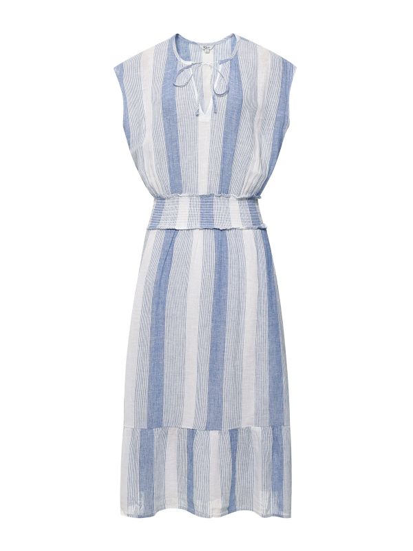The Rails Ashlyn dress is a relaxed option ideal for laid-back summer days. Crafted in a linen blend, the midi dress will ensure essential breathability. Featuring a v-neckline with tie detail, short cap sleeves, ruched hem and elegant ruffle tier hem, whilst the striped pattern in chalky hues exudes a freshness perfect for warm weather dressing.
