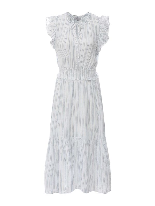 The V neckline is finished with delicate ruffle trim and tie details for a touch of romance, while the ruffled flutter sleeves add movement and charm. A shirred waist creates a flattering shape, and the all-over stripes keep the look fresh and summery. With its easy midi length, this Rails dress is ideal for everything from beach strolls to brunch dates.