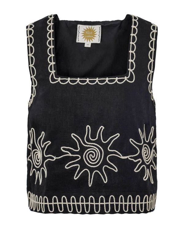 The Rails x LSPACE Akira Top is a stunning style made for every summer collection. Beautifully crafted from 100% linen, this Rails top is airy and breathable for comfort all day long. It has a slightly cropped, tapered fit, wide straps and a square neckline. The design is complete with contrast embroidered suns for the ultimate summer vibe.