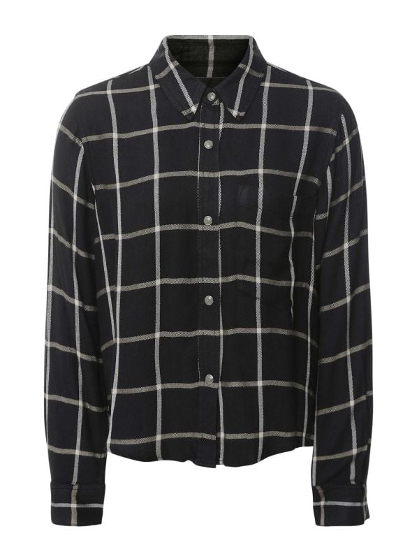 The Rails Malin Check Shirt is a lightweight button-through style cut from 100% rayon for a soft, fluid finish. It features a classic collar, metal snap fastenings and a single chest patch pocket. The long sleeves finish with button cuffs and the hem sits slightly cropped for easy layering over high-waist jeans. Wear it tucked or loose for relaxed weekend dressing; the breathable rayon fabric gives a gentle drape and subtle movement throughout the day.