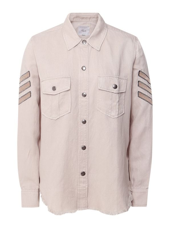 The Rails Loren shirt draws inspiration from classic military-issue uniform. Crafted in a Tencel™ and linen blend, the shirt jacket offers a lightweight feel and super soft handle. Featuring a pointed collar with snap button closure, flap chest pockets and buttoned cuffs, with the decorated sleeves enhancing the shirt's design inspiration.