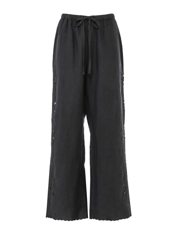 Cut for a relaxed, full-length silhouette, the Mirina Straight Leg Pants by Rails combine breezy tailoring with decorative detailing. A drawstring elasticated waist ensures easy, adjustable wear while embroidered eyelet panels run down each leg for subtle texture. The Pants finish with a scalloped hem and a loose leg that moves softly. Pair with lightweight tops or the shirt from the same line for a coordinated look.