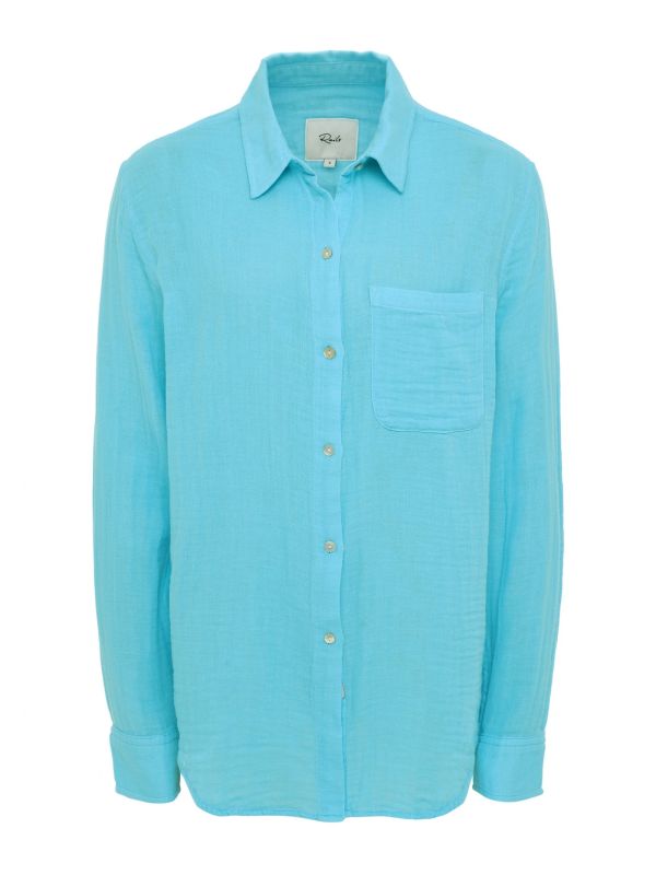 The Rails Ellis shirt is a chic option for casual summer dressing. Crafted in pure organic cotton gauze, the shirt offers a lightweight, breathable and tactile feel. Featuring a pointed collar, long sleeves and patch pocket, whilst the natural shell buttons add a luxe finish.