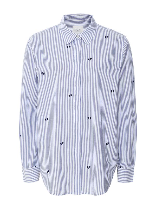 Crafted in a lightweight cotton and rayon mix, the Rails Taylor shirt is a versatile wardrobe staple for every season. Perfect for dressing up or down, it features a pointed collar, concealed button-down fastening, all-over stripe and a curved hem. Embroidered broken hearts add a quirky finishing touch.