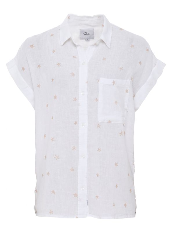 A super effortlessly stylish piece that will be sure to elevate your SS22 collection is the Rails Whitney shirt. Delicately crafted from a linen and rayon blend, the shirt has been cut to a regular fit with short sleeves. Boasting slits to the sides, a patch to the chest and a glitter star design all over, style this with wide leg jeans for a quirky look.