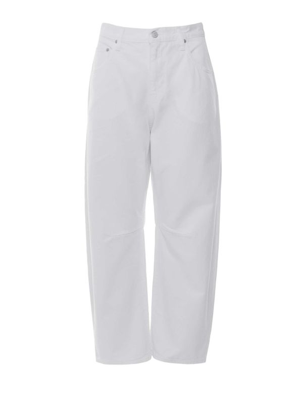 Crafted for a relaxed, sculptural profile, the Janie Barrel Wide-Leg Jeans from Replay present a cropped barrel-leg silhouette with a panel seam at the knee. The design features classic five-pocket styling, metal rivets, belt loops and a button-and-Zipper fastening, finished with a branded back patch. Pair with heels or Sneakers to accentuate the wide leg and cropped cut. They offer laid-back structure and an archival denim look with contemporary proportions.