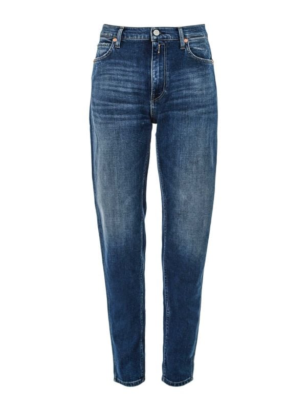 The Replay Keida Balloon-Fit Jeans are crafted from a stretch cotton-lyocell blend in blue indigo. Natural whiskers and sanding on the wear areas create a vintage look, while the balloon-shaped leg falls to narrow ankle cuffs. They're complete with the signature Replay tag on the back and distinctive embroidered 'R' on the back pocket. Wear these Replay jeans with a t-shirt and trainers for a timeless style.