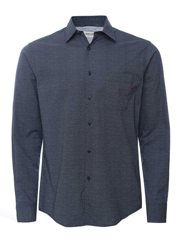 The long sleeves are finished with buttoned cuffs, while the rounded hem keeps the silhouette relaxed and wearable. Designed in a regular fit with a refined all-over micro-pattern, this Replay shirt is a great go-to for layering under jackets or pairing with jeans for a polished yet laid-back look.