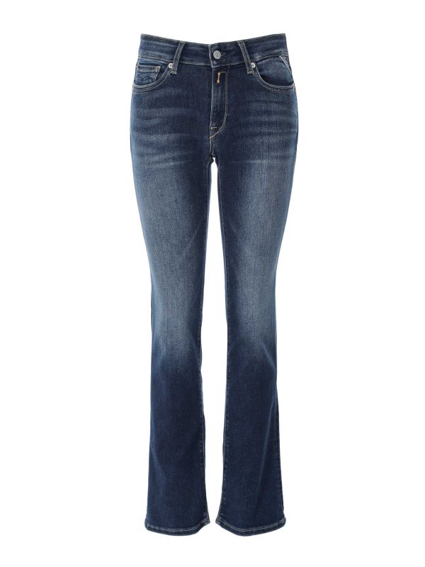 Designed for a feminine silhouette, the New Luz Bootcut Jeans from Replay offer a slim fit through the hips that opens into a classic bootcut leg. Tailored with five-pocket denim styling, belt loops and a button-and-Zipper fastening, they sit comfortably for everyday wear while retaining shape thanks to the stretch blend. The jeans are finished with signature back-pocket shaping and contrast topstitching for a subtly structured look. They pair equally well with boots or heels for versatile dressing, day-to-evening.