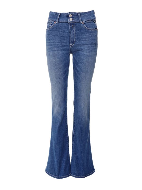 The Replay Newluz jeans will make a timeless addition to your denim rotation. Crafted in high-quality stretch cotton denim, these bootcut flare fit jeans have a high waist and skinny flared leg. This pair is complete with five pockets and vintage-style whiskering and fastens with two visible buttons and a zipper.
