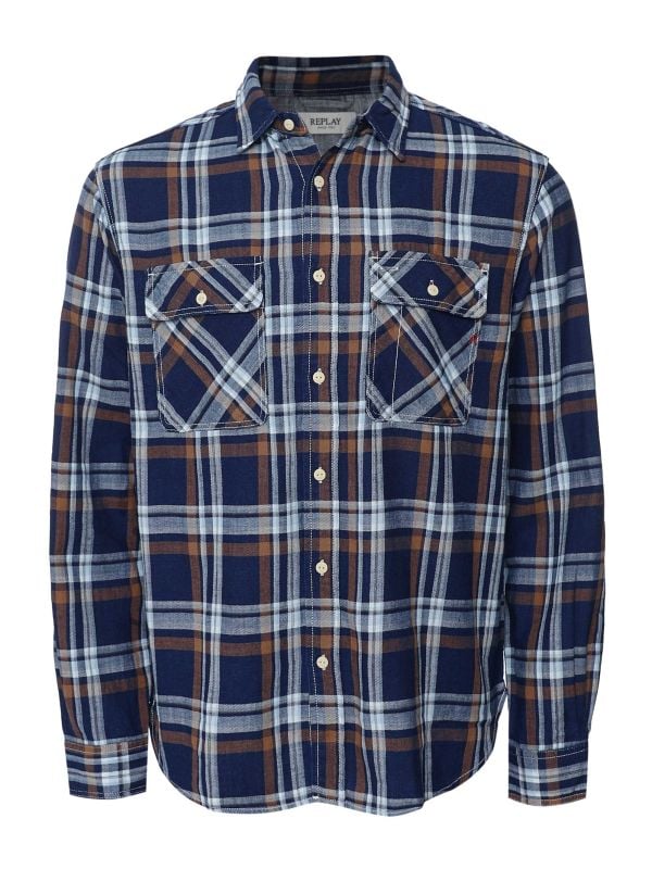 The Replay check shirt is a classic casual staple, crafted from soft cotton for all-day comfort. Designed with a pointed collar and button closure, it features buttoned flap pockets that add a touch of utility style. The long sleeves with buttoned cuffs and a rounded hem give it a clean, laid-back finish. Complete with a timeless check pattern and a regular fit, this Replay shirt is perfect for easy layering and everyday wear.