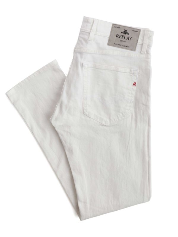 The Replay Slim Fit Grover Jeans combine contemporary tailoring with casual details. They feature a five-pocket cut with belt loops, rivet detailing and a branded leather waistband patch. A small embroidered 'R' on the rear pocket and contrast topstitching on the coin pocket add subtle brand cues, while the clean silhouette sits neatly through the leg. Finished with tonal hardware and smartly placed seams for movement, these jeans offer an understated option for everyday dressing. Ideal for casual and smarter looks.