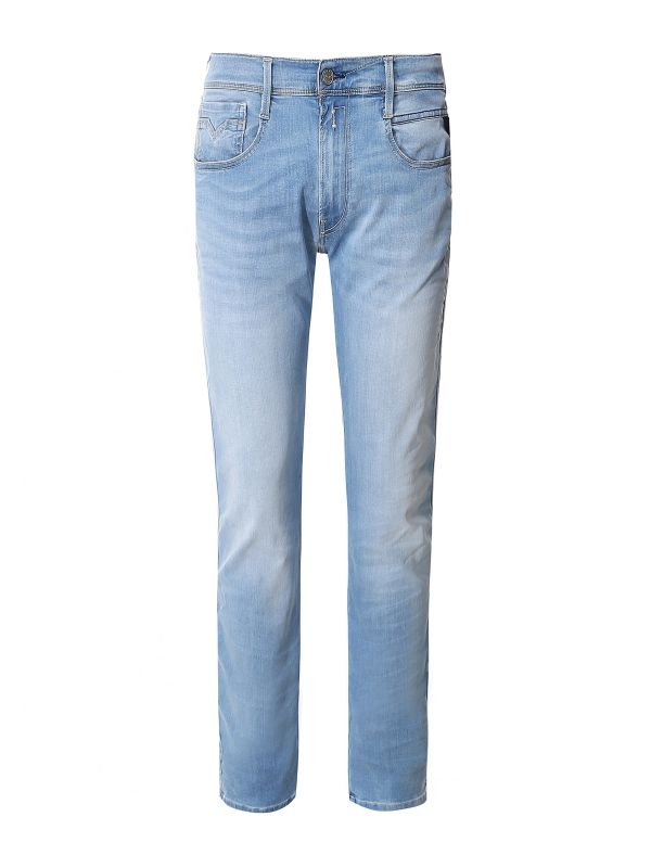 The Replay Hyperflex Anbass jeans are relaxed piece of casual wear engineered with sustainability in mind. Cut to a slim fit and expertly crafted in recycled denim stretch, the jeans combine 360° elasticity with the label's Hyperflex® technology to ensure exceptional freedom of movement and shape retention. Featuring a zip fly, five pocket design and soft tapered leg, whilst the faded wash provides a rugged finish.