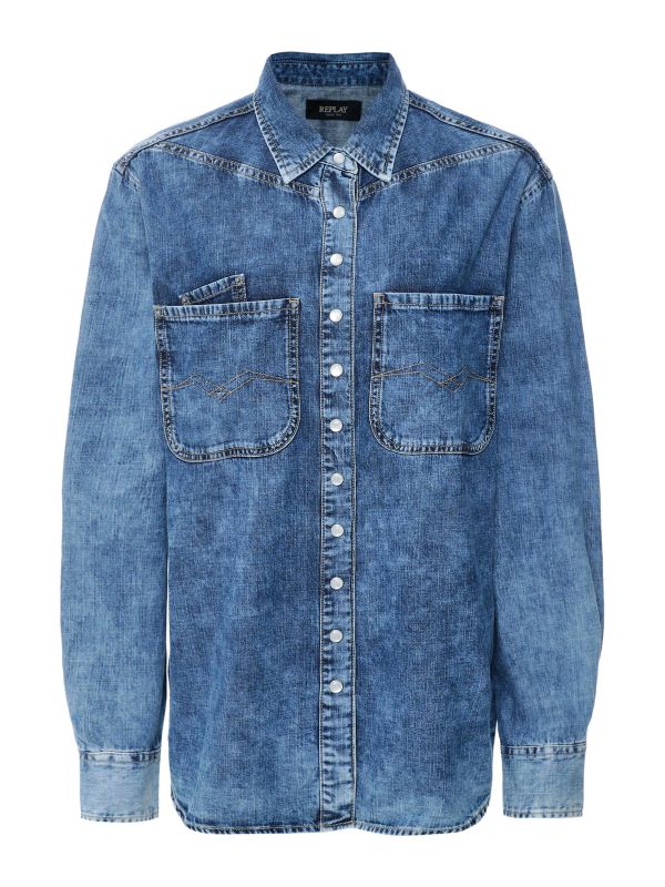 Replay's Three Pocket Denim Shirt is a casual style made for everyday styling. Cut from pure cotton denim, this Replay shirt features a classic shirt design with a pointed collar, press-stud fastening, long sleeves with press studs on the cuffs and a rounded hem. It's finished with two patch pockets on the chest and an additional third smaller pocket.