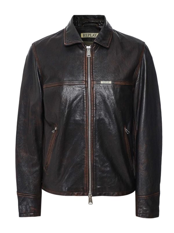 The Replay waxed leather jacket is a standout piece crafted from premium sheepskin with a vegetable-tanned waxed finish for a rugged, lived-in look. Designed with a stretch cotton lining for comfort, it features a fold-down collar and a two-way zip closure for versatile styling. Zip side pockets add practicality, while adjustable stud cuffs and hem let you refine the fit. With its relaxed silhouette, this Replay leather jacket delivers effortless cool and timeless attitude.