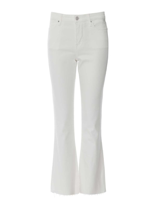 The Zolie Flare Jeans by Replay present a fitted upper that opens into a dramatic flared leg for fluid movement. This five-pocket pair features a button-and-Zipper fastening and a raw, frayed hem that adds a contemporary edge. Cut from a stretch denim, they offer comfortable shaping and reliable wear throughout the day. Subtle seam detailing and robust finishes underline the considered construction. Pair with ankle boots or a tailored blazer for season-round styling.