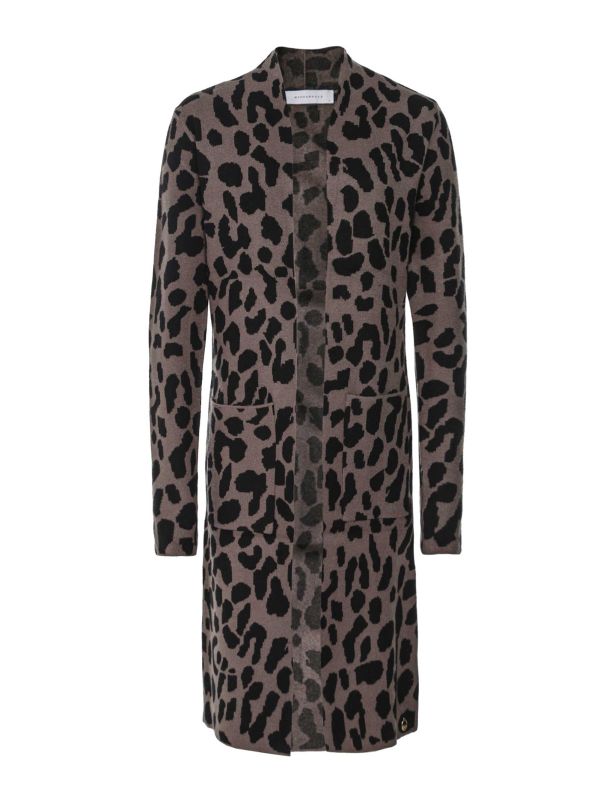 Add a stylish layer of warmth with the Annabel cardigan from Rino & Pelle. Featuring an all-over animal print, this Rino & Pelle cardigan is crafted from a cosy viscose blend. It falls to a long length and has an open front, long sleeves and patch pockets. Wear yours effortlessly over a top and your favourite jeans.