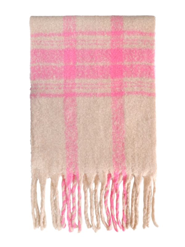 The Rino and Pelle Aria scarf is sure to cheer up gloomy winter days. This polyester-made scarf features a pretty pink check print and statement fringe details to the hem. Wear this long scarf with everything from knits to heavier winter coats.