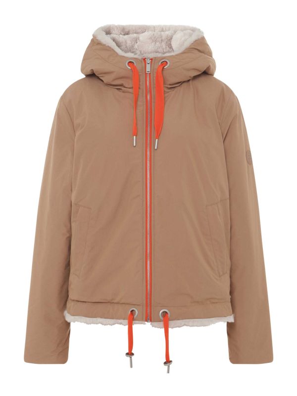 Wear one style two ways with the Aviva Reversible Jacket by Rino & Pelle. The Aviva is a reversible women's jacket, allowing you to switch between the tan-coloured cotton shell or beige faux fur. This Rino & Pelle jacket is finished with a cosy hood, zipper closure, side pockets and contrasting orange details. Discover your favourite side or style both to suit the occasion.