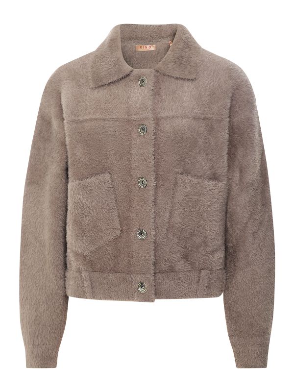 The Rino and Pelle Bubbly jacket is a soft and cosy knitted jacket with a short, boxy shape. It has a flat collar, button closure to the front, two pockets, cuffs with a single button closure and additional buttons down the centre of the back. This lightweight jacket makes for a warming layering piece over blouses and knits.