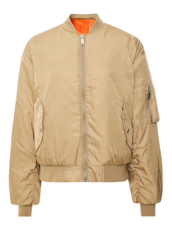 Meet the Rino and Pelle James jacket with a reversible construction for versatility. This cosy bomber jacket can be worn with the original fabric or switched over to the faux fur side in an alternative colour. It has an elasticated collar, cuffs and hem, front zipper, flap pockets with snap buttons and a single arm pocket with a zip. Choose your favourite side to suit the occasion.
