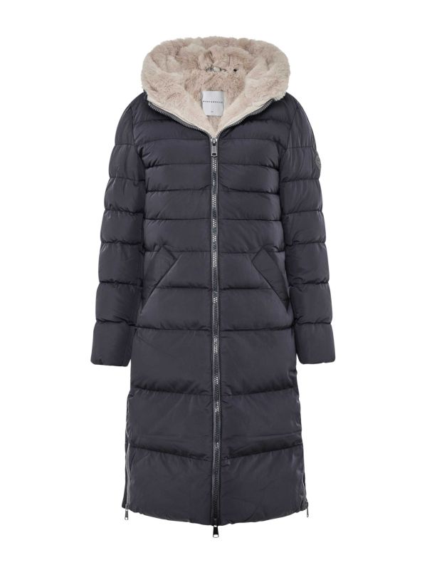 The Keila Faux Fur Padded Coat is a longline padded coat from Rino and Pelle. It has a generous faux fur-lined hood, horizontal quilting and a two-way front zip for flexible wear. Angled front pockets keep essentials close while side zips at the hem allow ease of movement. The long silhouette provides extended coverage and full-length sleeves complete the practical design. A round logo patch to the sleeve offers subtle branding. This piece is designed to deliver warmth and purposeful detailing for cold-weather days.